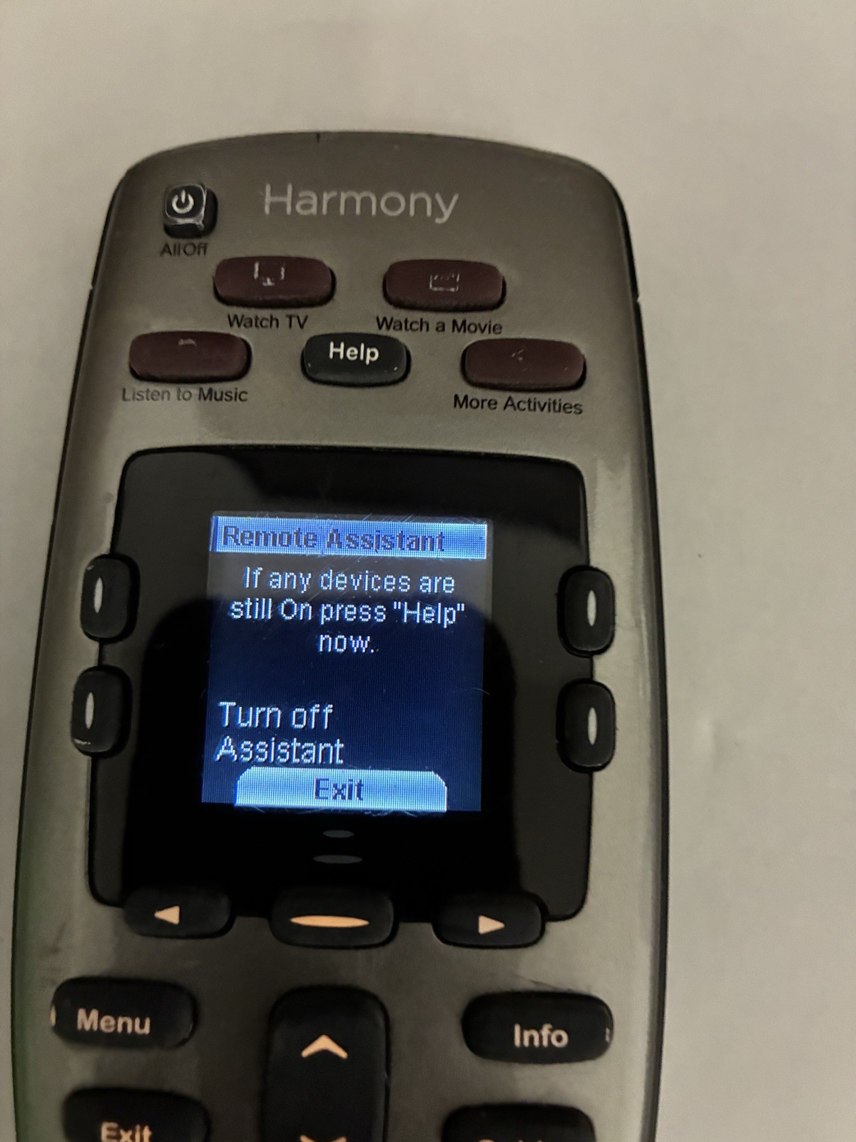 The Logitech Harmony 650 Infrared All in One Remote Control is a versatile and sleek device that serves as a universal remote for various brands and models. With a wireless range of 5-10 meters, this remote control offers convenience and ease of use for controlling your TV, video, and home audio devices. Its silver color and compact dimensions (8-10 inches in length, 3 inches in height, and 4 inches in width) make it a stylish addition to any entertainment setup. The Logitech brand ensures quality and reliability, making this remote control a practical choice for simplifying your TV viewing experience. It turns on I just don’t know how to work it. It’s pre-owned and in good condition thank you