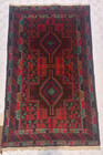 3x5 ft Authentic Afghan Balouch Tribal Wool Rug Hand-Knotted Dark Brown Red Geom
