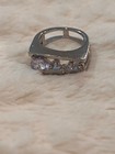 Modernist Silver Tone Simulated Gemstone Ring - size 7