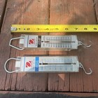 Lot of 7 Hanging Spring Scales: 5 Tube Scales & 2 Round Scales