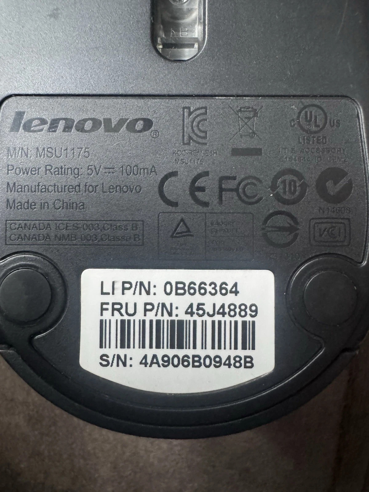 Pre-owned Lenovo USB wired optical mouse.