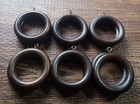 Brown Vintage Wooden Curtain Rod Drapery Round Rings w/ Eye Hooks Set Of 12