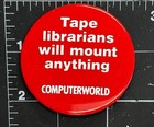 1980s Humorous Tape Librarian Computerworld Pinback