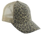 Low Profile Soft Structured Canvas Leopard Trucker Cap Brown