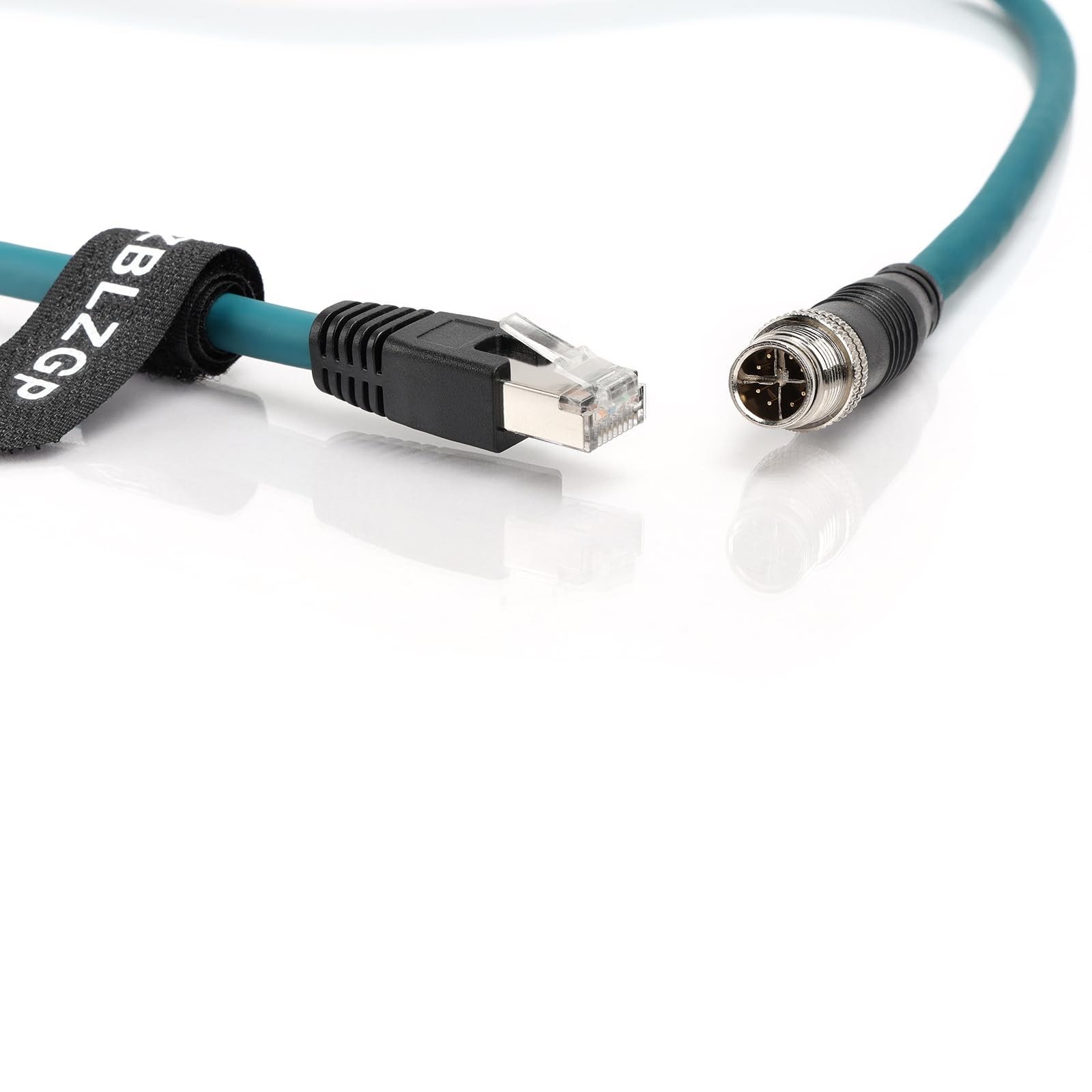 "This M12 8 Pole X-Code Male to RJ45 Cat6a Ethernet Shielded Cable is usde for Industrial Machinery, Ethernet, network applications, Matrix Vision, Triton models, GigE Vision ,basler AVT Sony Cognex CCD cameras.