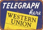 METAL SIGN - Telegraph Here Western Union - Vintage Look Reproduction