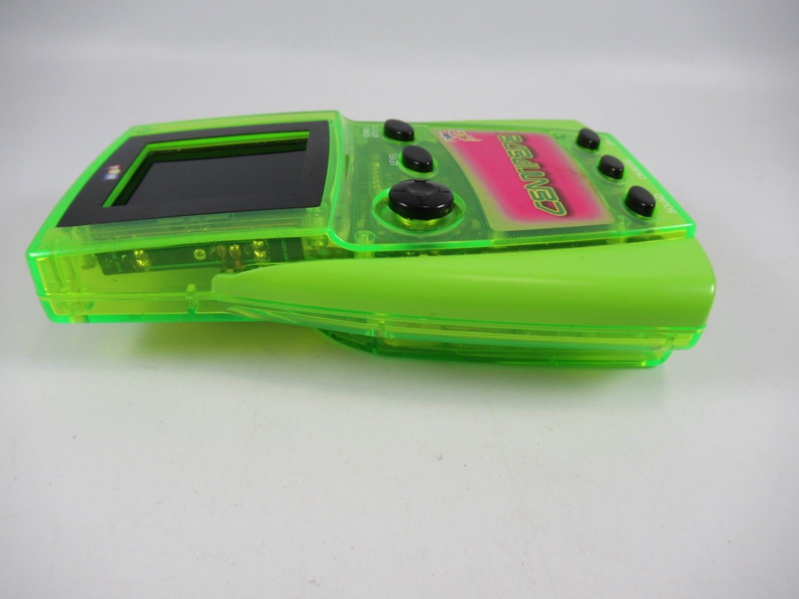 MGA Centipede Atari Arcade Handheld Game Clear Green 2000 is in good used condition with some wear. Tested and works. Takes 4 "AA" batteries (not included).