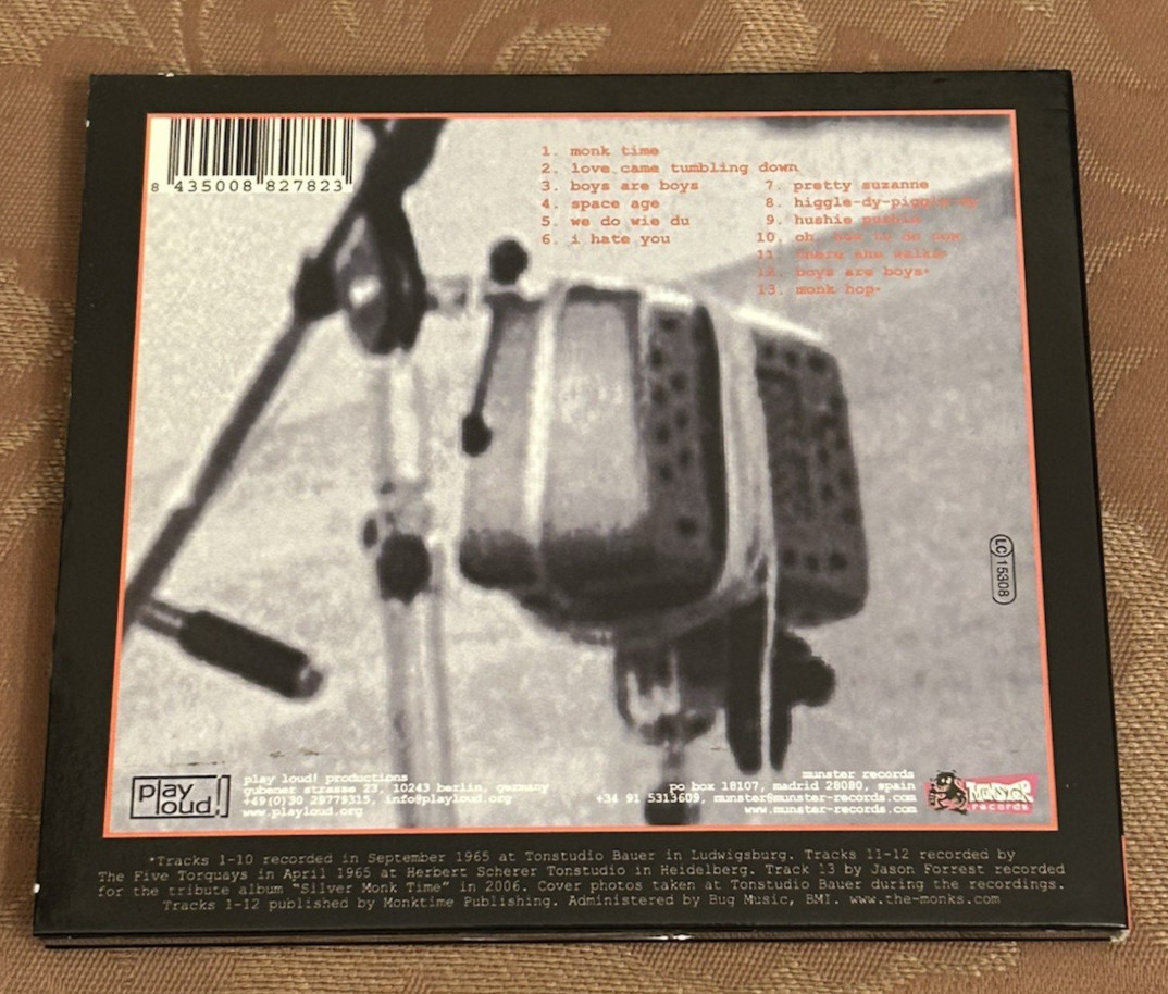The product is a German-import CD titled "Demo Tapes 1965" by the Monks, released in 2007 under Munster Records. This CD features psychedelic rock and garage rock from the 1960s, with a silver color and a cardboard sleeve. The CD comes with a booklet and is in near mint condition. CD and booklet are NEAR MINT. DigiPack sleeve is VG+ with light wear. This U.S. seller offers a unique opportunity for fans of psychedelic and garage rock music to enjoy the music of the Monks in its purest form, capturing the essence of the 1960s era. USPS Media Mail shipping in the U.S. is $6.00.