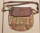 MYRA Brown Leather & Woven Canvas Southwest Crossbody Saddle Style Bag