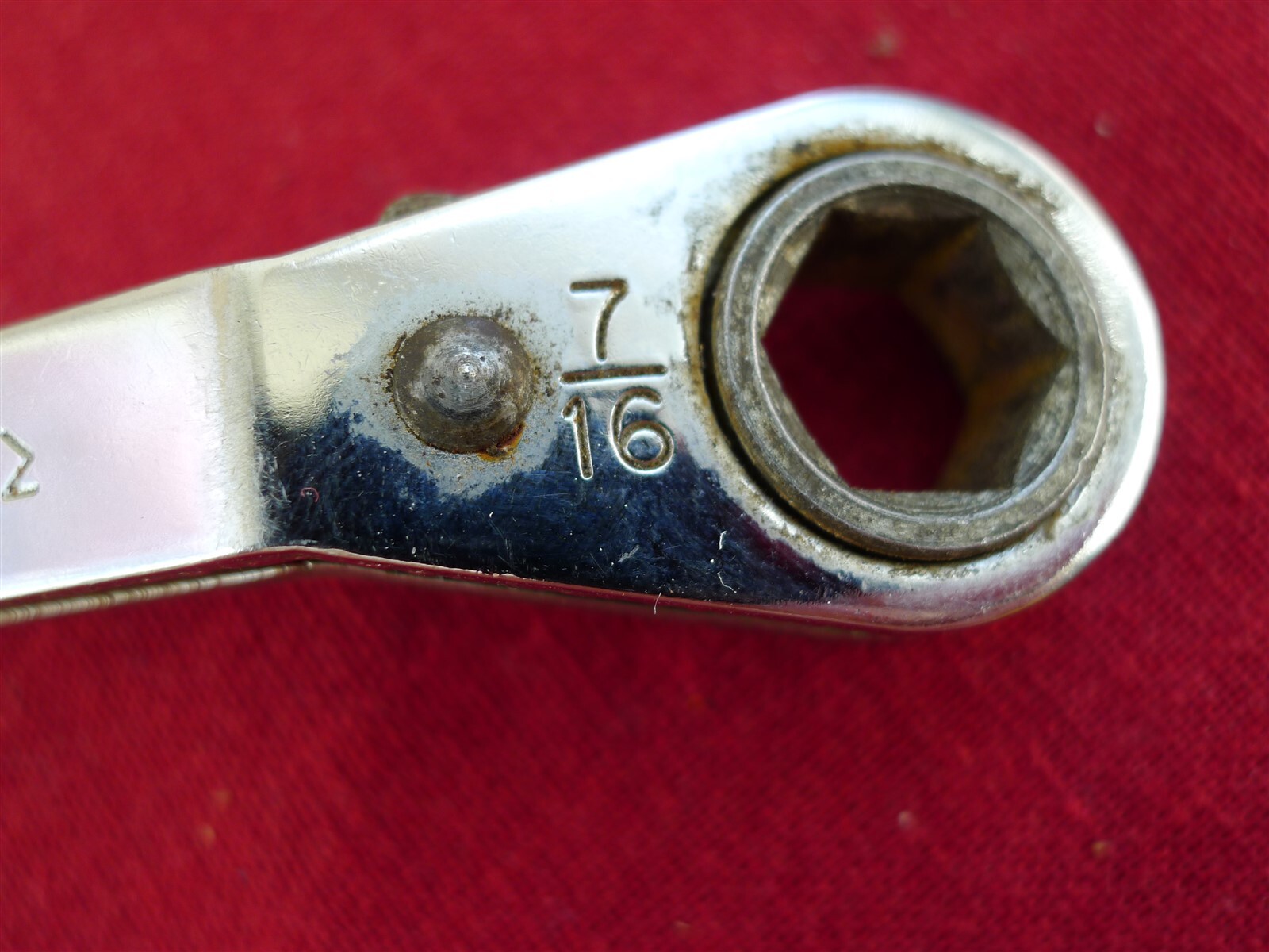 You are bidding on a used Mac Tools USA 3/8 x 7/16 ROW1214 Ratcheting Box Wrench . Has some wear marks and scuffs and wear but is overall in good condition. No initials or engravings on tool.