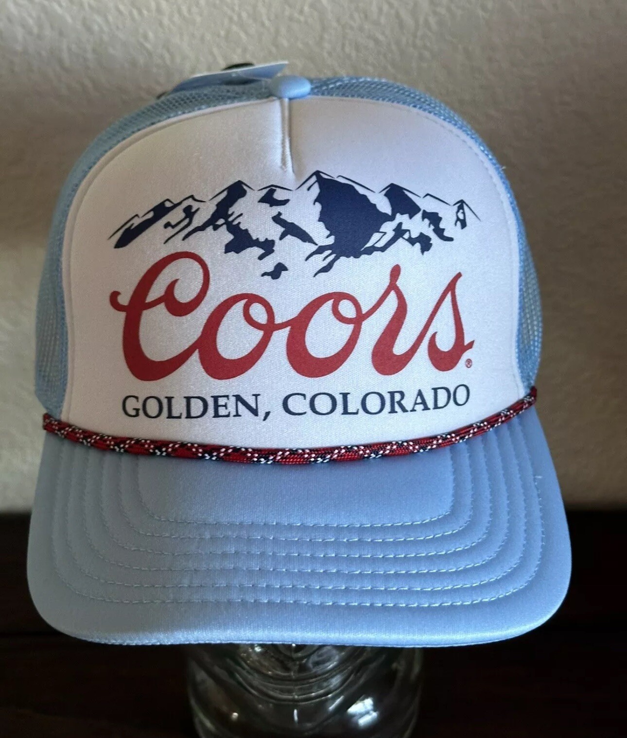 Mad Engine Coors Foam Light Blue Mesh Trucker Snapback Rope Hat NWT