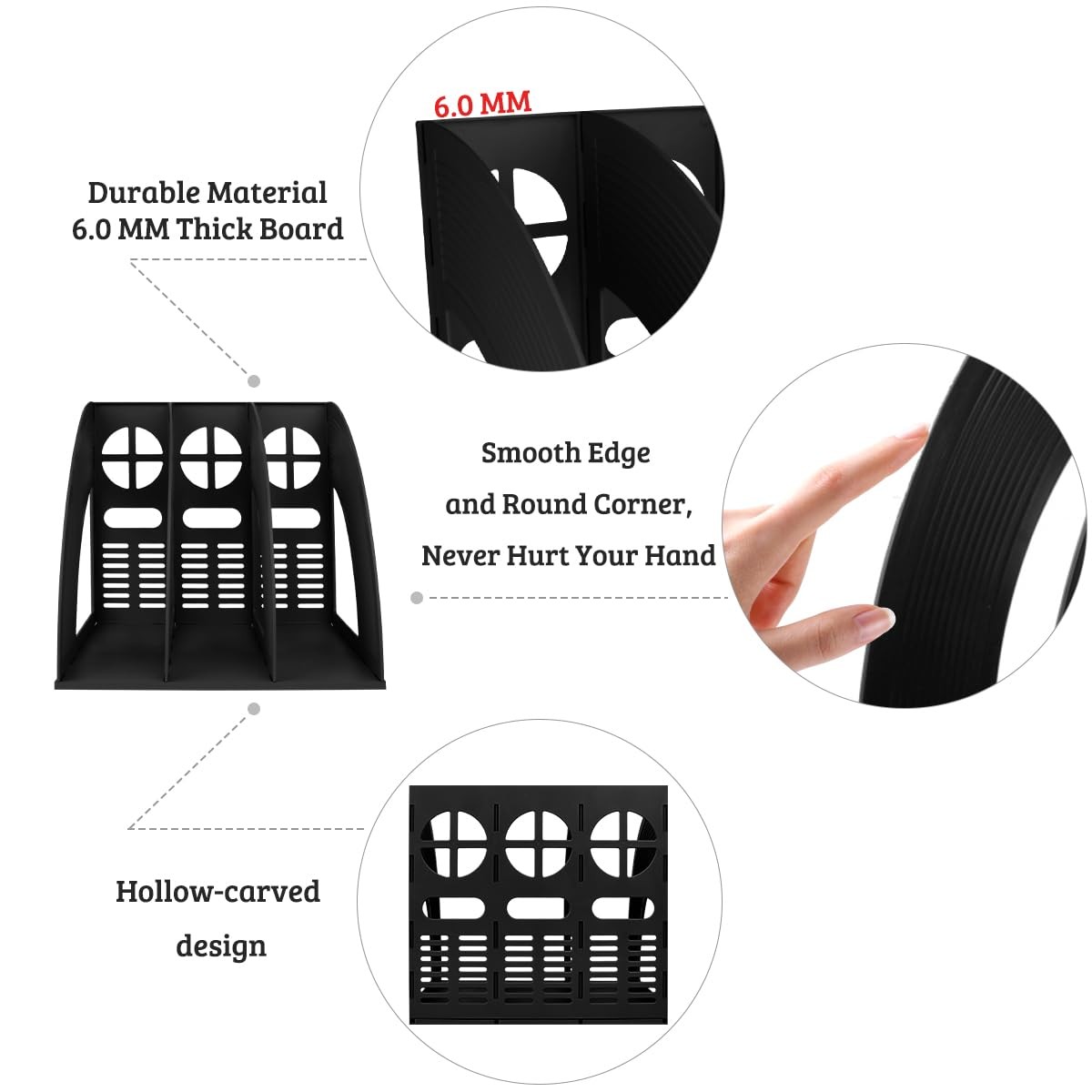 - PREMIUM MATERIAL: Made of thick and durable plastic, the magazine holder has a sturdy and stable structure with a strong load-bearing capacity and is not easy to tip and deform. The non-slip texture of the dividers won't let files slide. Smooth edges do not scratch hands.