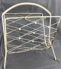 Vintage MCM Metal Wire Magazine Record Rack with Wooden Feet