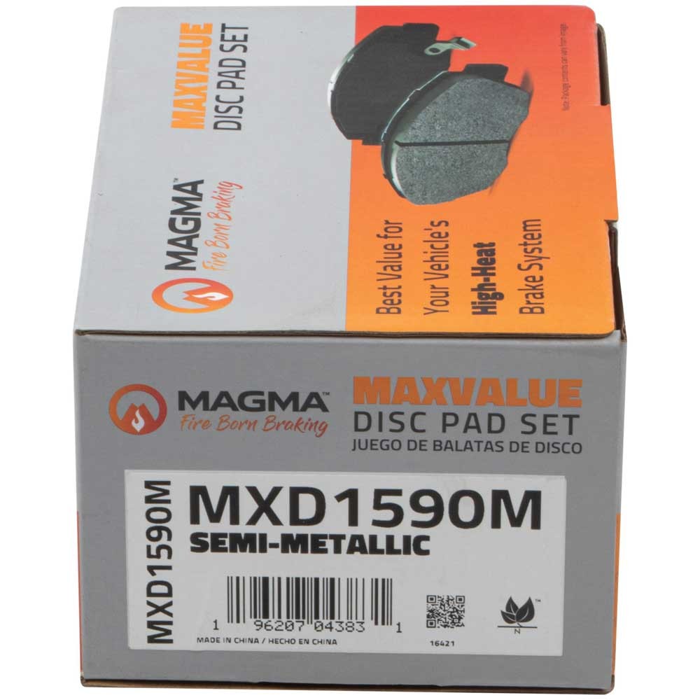 WHY MAGMA? - Today's harsh braking environments can create very high heat levels in your braking system which can reduce the vehicle's ability to stop. Extreme high temperatures can be reached in many braking situations such as - Stop and Go Traffic, Mountain Driving, Hauling or Towing, Emergency Stops, Spirited Driving and Long, Sustained Braking. At MAGMA Brakes, we use FIRE to fight FIRE. Our brake system components are made using advanced, state of the art techniques and treatments that ensure our brakes will stand up to the heat.MAGMA MaxValue brake pads feature...1. Premium friction materials for superior braking performance2. Fully post-cured friction for right out of the box performance3. Noise suppressing woven shims attached for quiet stopping4. Anti-corrosion paint coating for longer service life