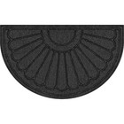 The Mainstays 18"x30" Gray Sunburst Polyester Utility Entryway Door Mat is a stylish and durable addition to any home. Made from polyester with a stain-resistant and antimicrobial design, this door mat is both practical and attractive. The sunburst design adds a modern touch to your entryway while the non-slip backing ensures it stays in place. Machine-woven in the United States, this door mat is easy to clean and perfect for keeping your floors tidy.