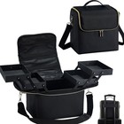Makeup Travel Train Case, Black Makeup Carrying Organizer Bag, 4 Tier Profess...