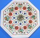12 Inches Marble Side Table Gemstone Inlay Work Coffee Table Top for Cafeteria