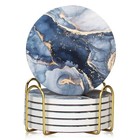 Marble Pattern Coasters Round Drinks Absorbent Stone Coaster Set With Ceramic St