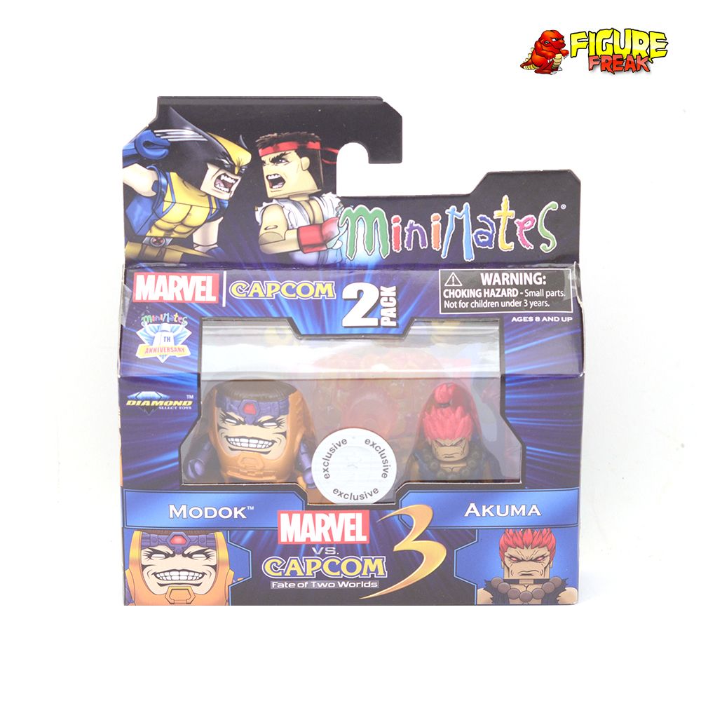 From the Marvel vs Capcom 3 Minimates Toys R Us Exclusive Wave 3... loose and complete MODOK figure. A Diamond Select Release! Art Asylum Designs & Sculpts! Round Three -- Fight! The third wave of Minimates based on Marvel vs. Capcom 3 is entering the arena, with four new two-packs of Marvel and Capcom characters! This assortment includes Captain America vs. Ryu, Doctor Doom vs. Wesker and two sets exclusive to Toys R Us: Thor vs Amaterasu and MODOK vs Akuma! Each Minimate stands 2" tall with 14 points of articulation and a variety of removable and interchangeable parts and accessories.