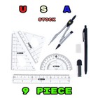 West Coast Paracord 9 Piece Math Tool Sets, Pencil, Compass, Rulers, Protractor