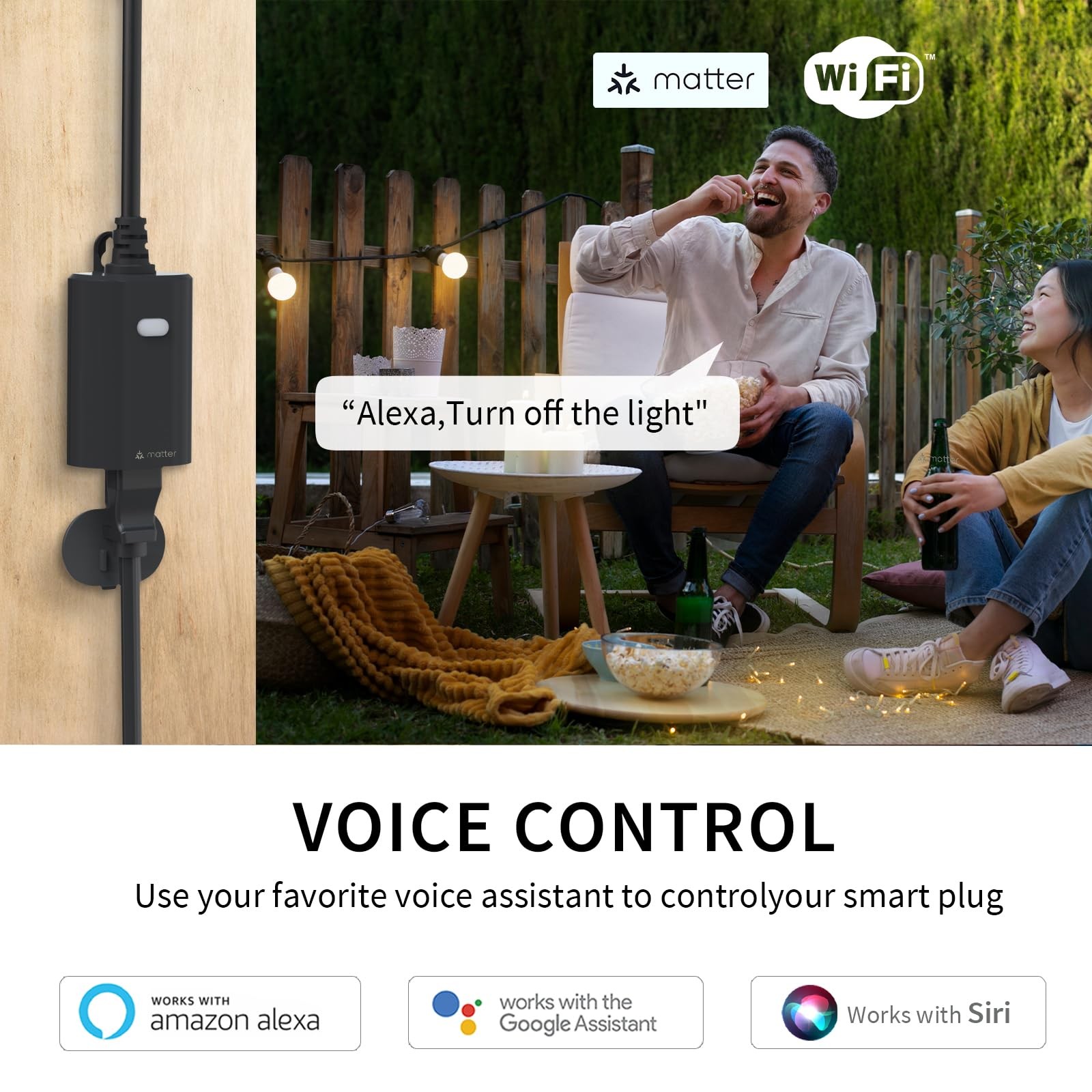 The MP22M is an enabled 15A(1875W) Resistive Matter outdoor smart plug designed for use seasonal and landscape lighting, porch light, fountains, pumps and other indoor and outdoor plug-in appliances. It's compatible with LED, halogen, incandescent, xenon, fluorescent and compact fluorescent bulbs. Compatible with Alexa, Google Assistant, Smart Life, SmartThings, Apple Home or voice control by Alexa and Google Assistant to operate your devices in your home.