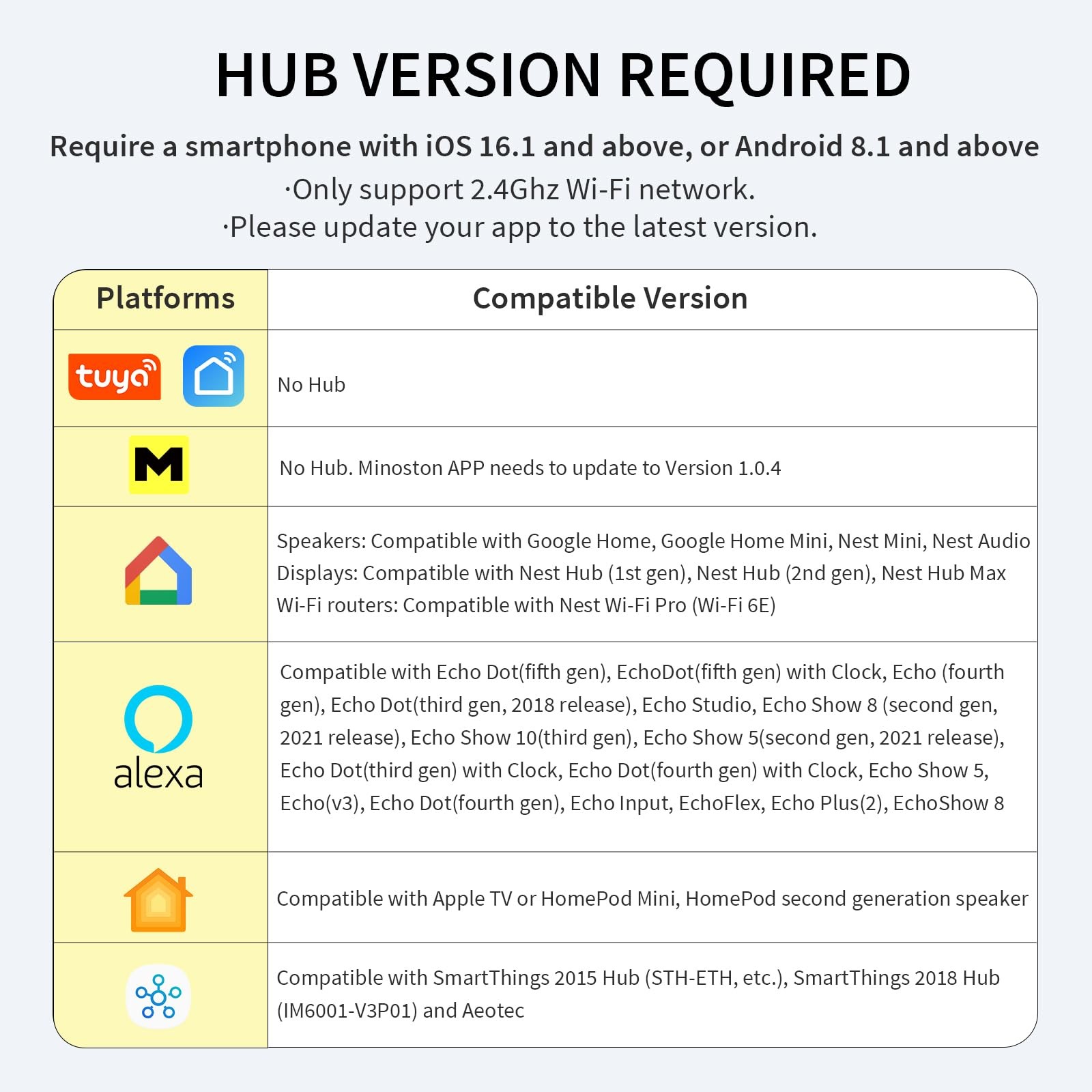 [Fast and Easy Setup] Simply plug in a device, connect to your Wi-Fi network, and download the app on your cellphone. No hub is required to add to Smart Life or APP. The hub and apps needs to be updated to the lastest version for Matter compatibility.. Note:It only supports 2.4GHz Wi-Fi network, not 5.0GHz Wi-Fi.