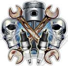 Mechanic Skulls Skull Piston Spark Wrench Car Bumper Vinyl Sticker Decal 4.6"