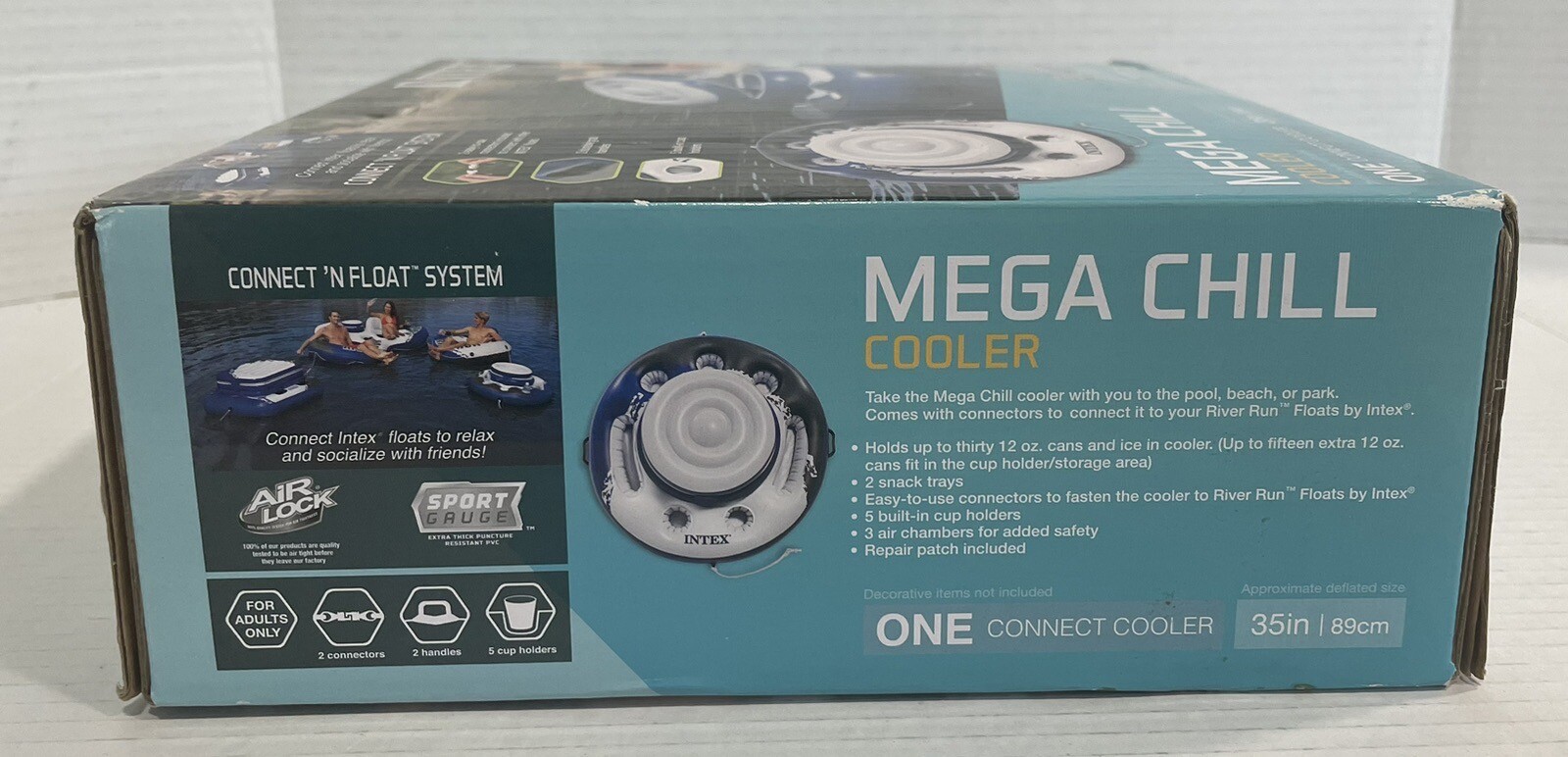 Crafted from durable vinyl material, this cooler holder is designed to withstand the wear and tear of outdoor use. It features no additional features, making it a straightforward and easy-to-use accessory. Perfect for pool lounging, the Intex Mega Chill cooler holder is a must-have for any pool party.