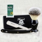 Men's Shaving Brush With Synthetic Hair & Black Cut Throat Razor For Mens