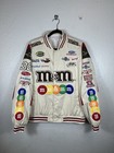 M&M Nascar Racing Jacket Mens Size L Beige Varsity Embroidered Snap Bomber