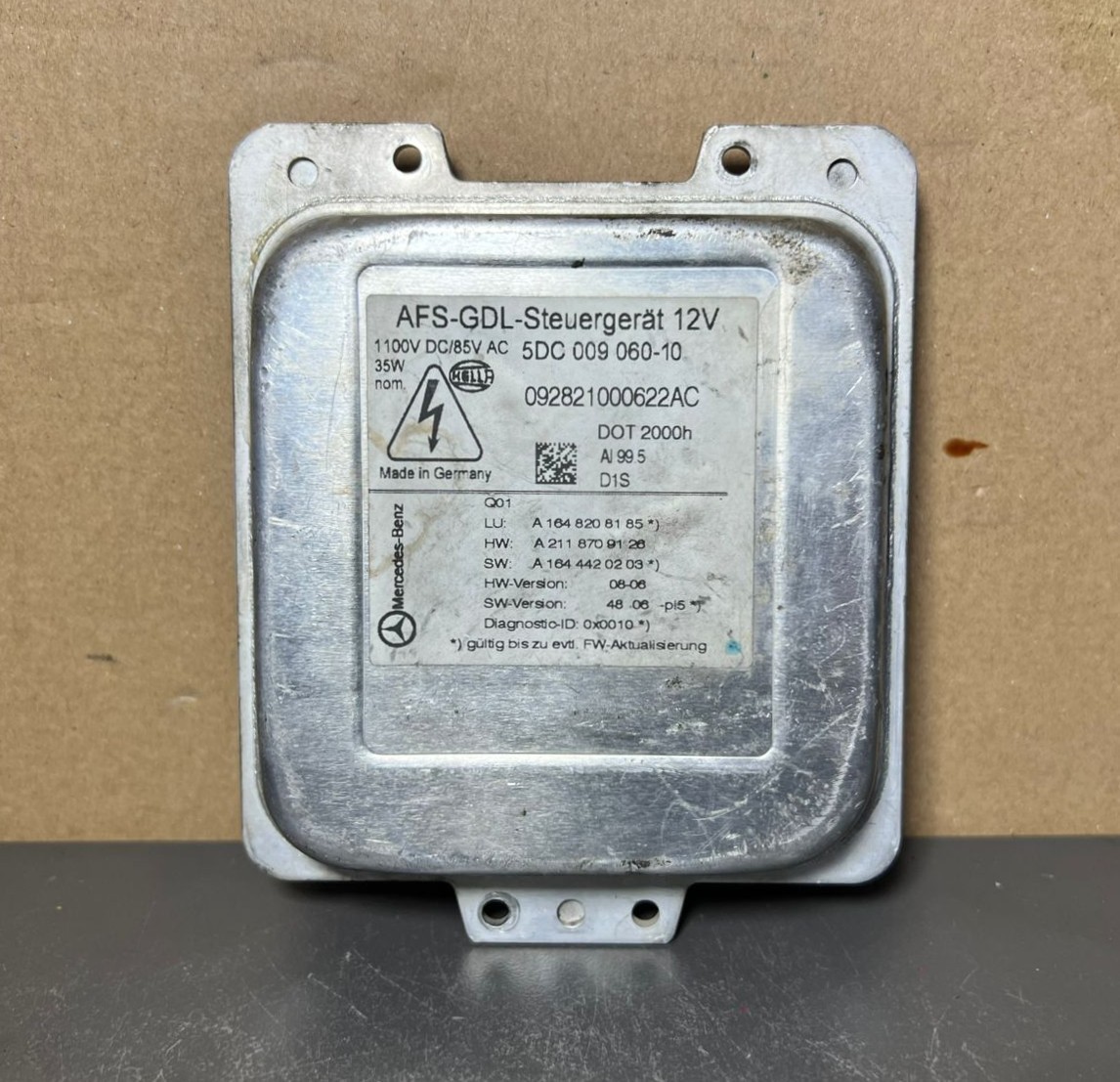 The Mercedes W164 ML GL Xenon Light Headlight Control Module Unit A164 8208185 OEM is a genuine part made by Mercedes-Benz in Germany. This module is designed for easy installation and features a fast microprocessor for efficient control of the Xenon headlight system. With interchange part numbers 164 820 81 85 and OE/OEM part numbers A164 8208185, this high-quality control module is a perfect fit for Mercedes-Benz vehicles, ensuring optimal performance and functionality.