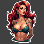 Pinup Girl Sticker Vinyl Decal Red Hair Bikini Floral Tattoo Pinup Beauty