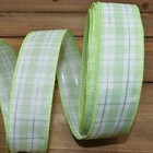 Pastel Green White Silver Plaid Wired Ribbon 1.5"W x 10 Yards