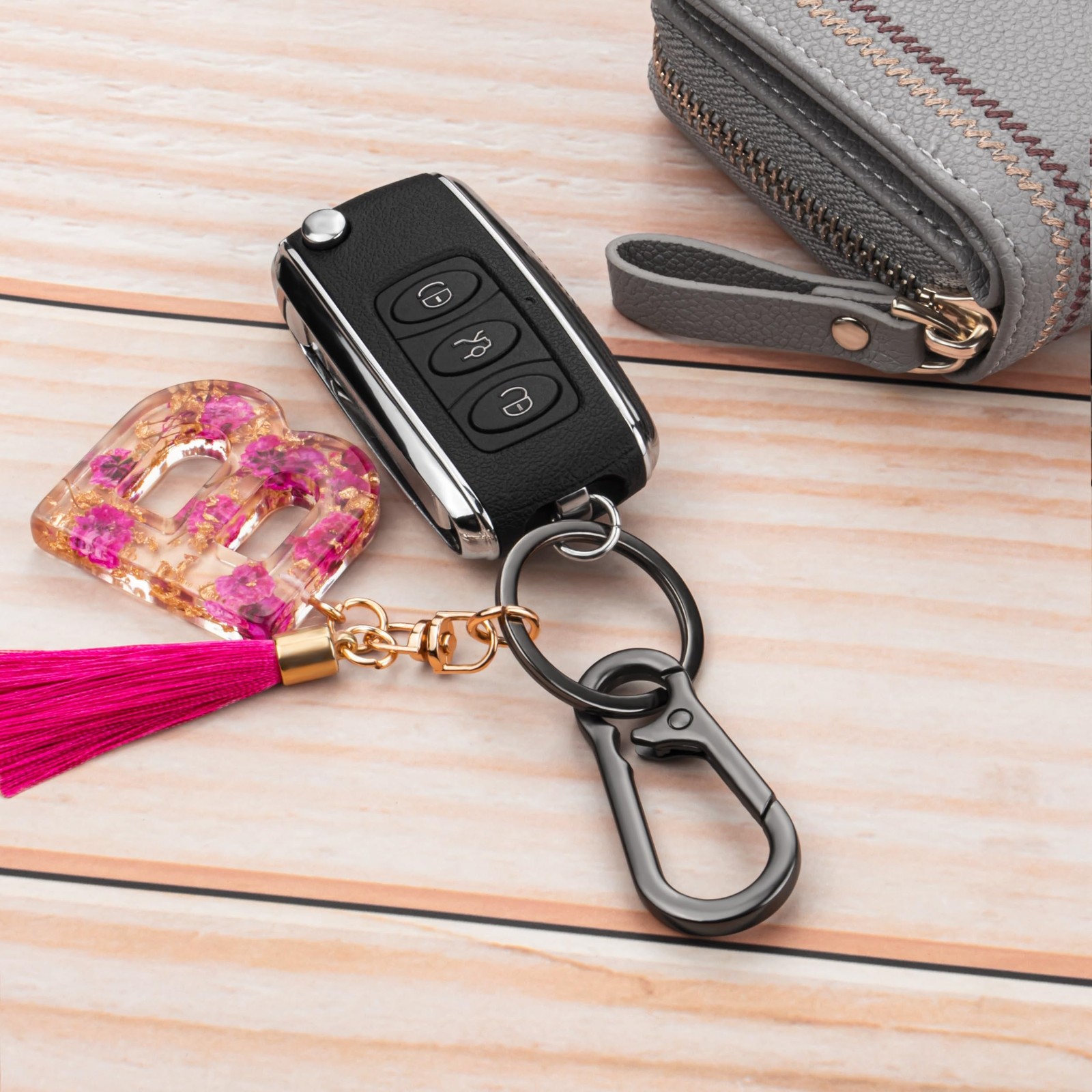 Keychains are a practical and stylish accessory that every woman should have. These lightweight and durable keychains with key rings are the perfect addition to your daily essentials. Crafted with high-quality materials, they are designed to withstand the wear and tear of daily use. The carabiner-style design allows you to easily attach your keys, making them easy to find and access. These keychains are not just functional but also fashionable, with a sleek and modern design that complements any outfit. Whether you're heading to work, running errands, or going out for a night on the town, these keychains will keep your keys organized and within reach. With their compact size , they won't weigh down your bag or pockets. Upgrade your accessory game with these stylish and practical keychains for .