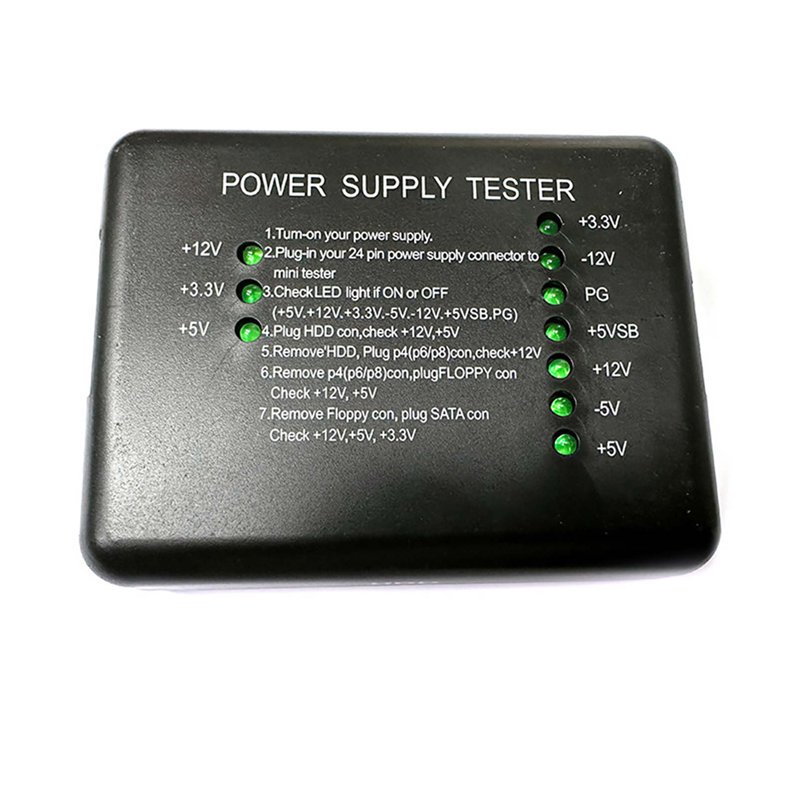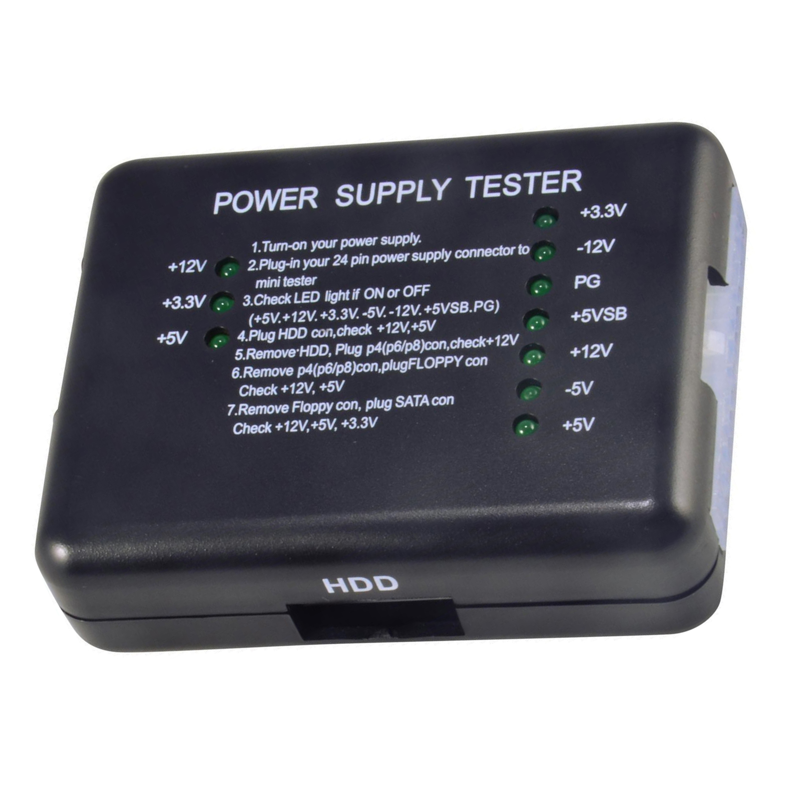 Features: This power tester only needs to be connected to the ATX connector of the power supply to easily and intuitively know whether the output of each channel of the power supply is normal. Power tester can test POWER GOOD signal ATX power tester can test 4PIN/6PIN/8PIN, HDD power interface/SATA power interface, FLOPPY (floppy drive power connector), 20PIN/24PIN.