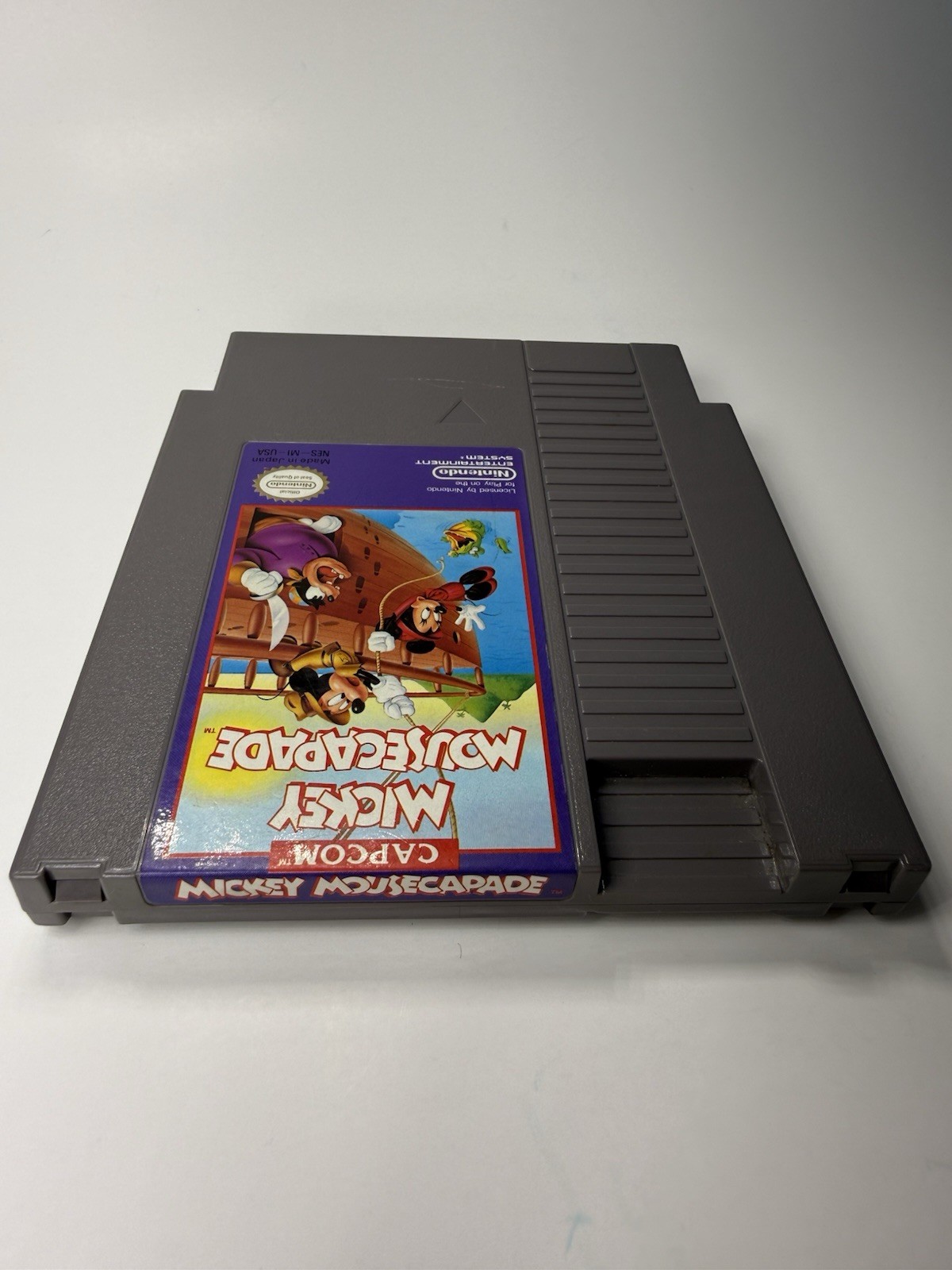 The product is a tested working Nintendo Entertainment System (NES) game titled Mickey Mousecapade. Released in 1988 by Capcom, this action and adventure game features Mickey Mouse and his friends in various exciting challenges. Perfect for fans of classic gaming, this title offers nostalgic gameplay and entertainment for players of all ages.