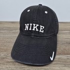 Vintage Nike Hat Y2K Silver Tag Swoosh Black Adjustable Cap OSFA Unstructured