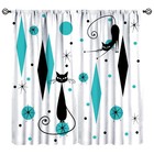 Mid Century Style Curtains,Black Cat Modern Abstract Geometric Vintage Colorf...