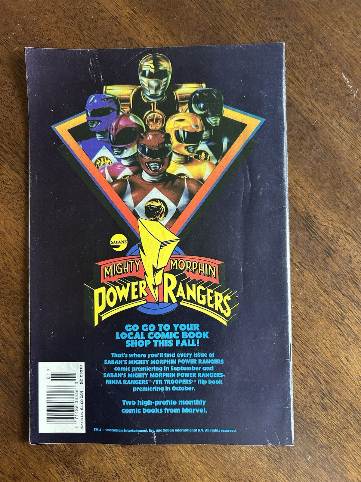 The product is a vintage comic book titled "Mighty Morphin Power Rangers: The Movie" published by Marvel Comics in 1995. The comic book features the popular Power Rangers characters in an action-packed storyline inspired by the movie. Written by Jimmy Palmiotti, Mark Mckenna, and Nel Yomtov, this single issue comic book is part of the US Comics tradition and is written in English. With a colorful style and a mix of action, superheroes, movie & TV, and fantasy genres, this collectible item is a must-have for fans of the Power Rangers universe.