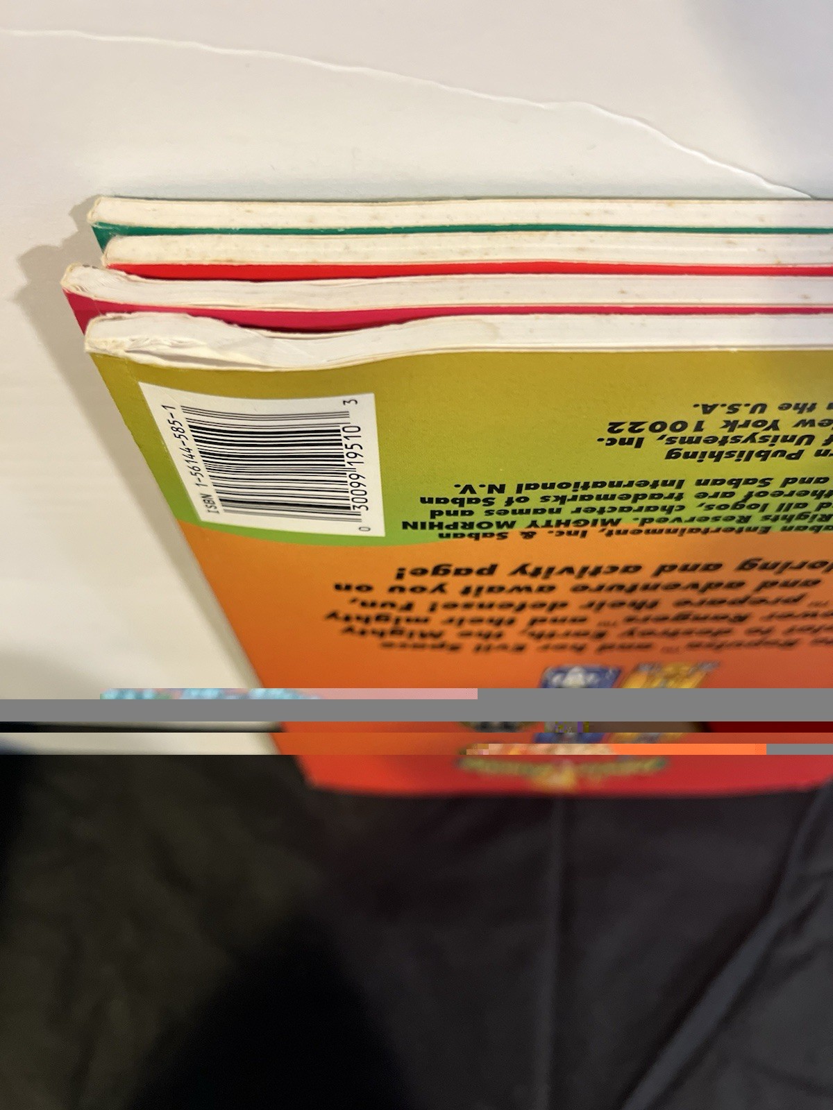 The Mighty Morphin Power Rangers 1994 Coloring and Activity Book set includes 4 unused books featuring the popular franchise. The books are in English and come from the 1990s era, making them a nostalgic addition to any Power Rangers fan's collection. With no signatures or personalized markings, these books are perfect for adding to a personal library or sharing with a young audience to enjoy the adventures of the Mighty Morphin Power Rangers.