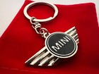 MINI Cooper Key Ring Chrome Metal Logo Black Silver Keychain + Velvet Gift Pouch