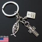 Trust God Cross Jesus Fish Christian Holy Bible Charms Keychain Gift Key Chain