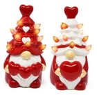 Valentines Day Decorations Lighted Ceramic Gnome Figurines with Heart Tree