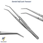 Dental Self Locking Tweezers Surgical Tissue Cotton Dressing Pliers Serrated Tip