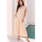 Textured Button Front Wide Leg Cap Sleeve Jumpsuit