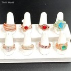 Lot Of 10 Rings Gold Tone Rhinestone Faux Gems Adjustable Womens Fashion Jewelry