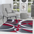 Modern Red Area Rug 4x6 Grey Swirls Carpet Bedroom Living Room Contemporary D...