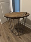 Black Round Metal Wire End & Side Table, Solid Wood Removable Top, Modern Design
