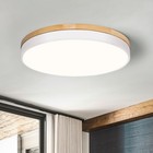 Modern LED Ceiling Light, Flush Mount, Round Wood, 30W, 2400 Lumens, Cool Whi...