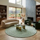 Handmade Wool and Silk Tufted Round Rug | Light Green Textured Abstract Area Rug